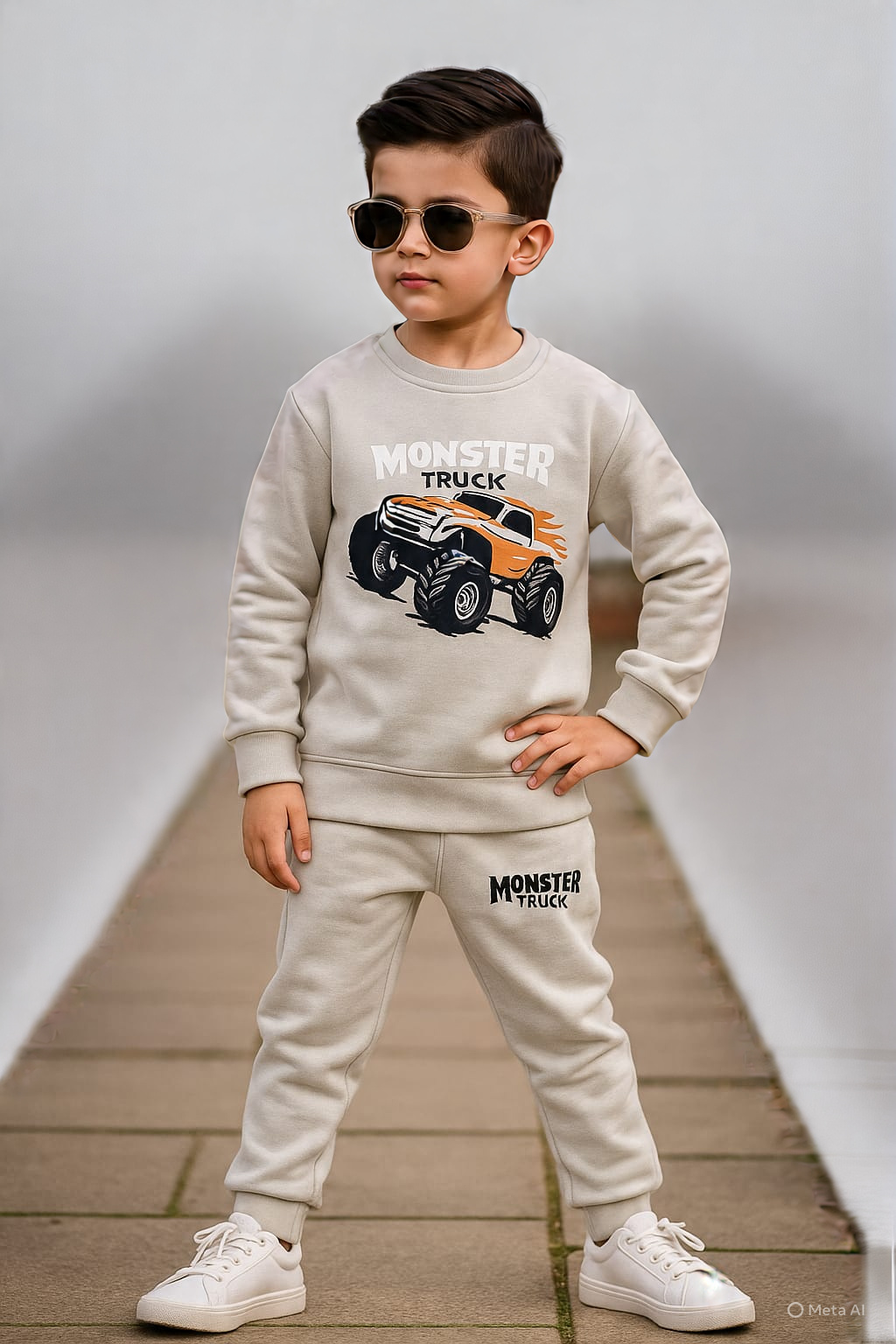 Elevate your little one’s style with this premium green tracksuit featuring an eye‑catching “Monster Truck” graphic on the front sweatshirt and matching logo on the jogger pants. Made from soft, comfortable fabric, it’s perfect for everyday wear, playtime, or casual outings. The set includes a long‑sleeve sweatshirt with a bold white & orange monster truck design and flame accents, paired with elastic‑waist joggers for a relaxed fit. Ideal for ages 4‑8 years. Pair with sneakers for a cool, coordinated look!